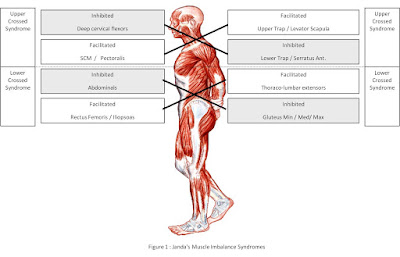 物理治療界很喜歡講的上交叉症候群/下交叉症候群(如下圖示)